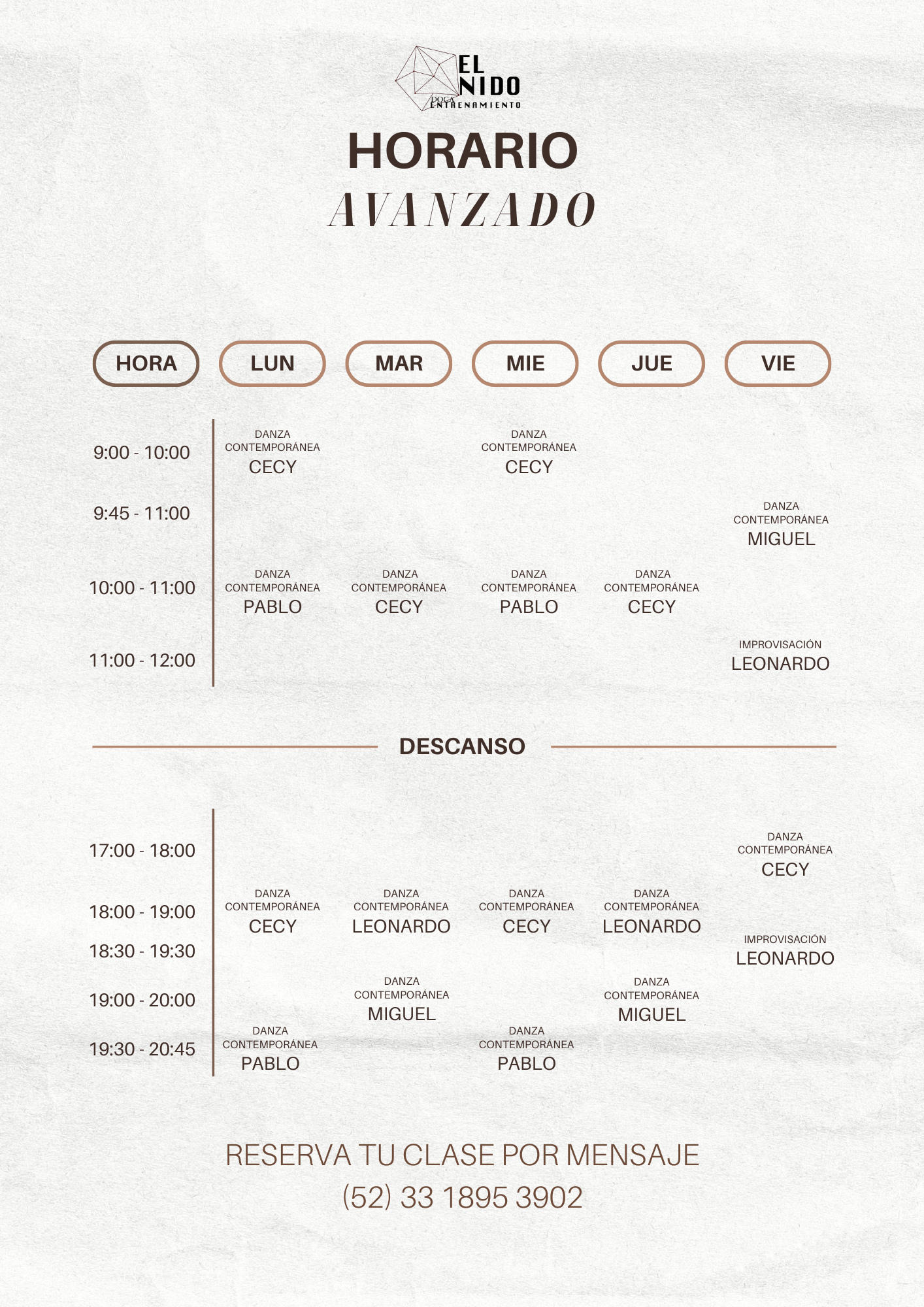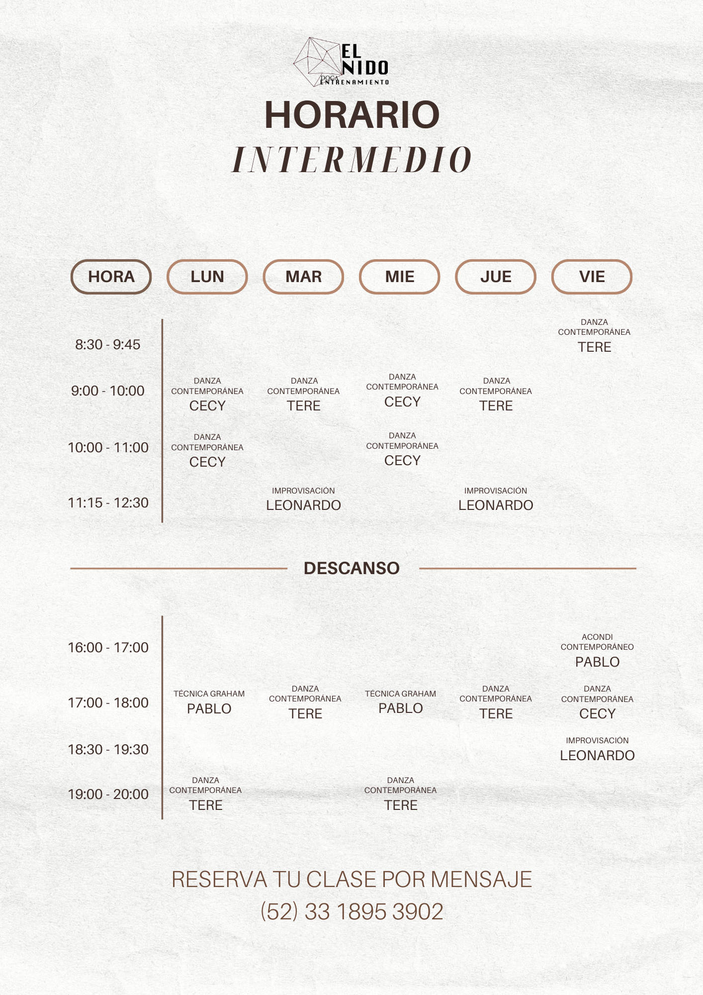 EL NIDO es un espacio de entrenamiento en danza contemporánea especializado en personas adultas (15 a 65 años). Este es un espacio para conocerte, para reconectar contigo y sanar desde el cuerpo.